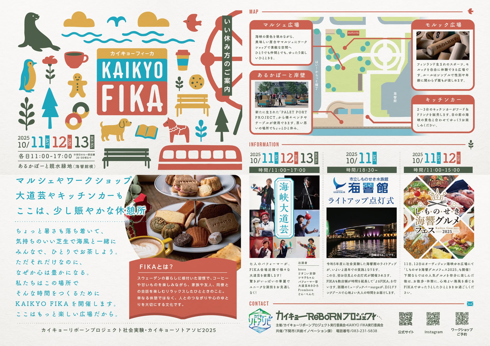 この社会実験に併せて、あるかぽーと親水緑地で「カイキョーフィーカ」を実施します。フィーカとは、スウェーデンの暮らしに根付いた習慣で、コーヒーや甘いものを楽しみながらリラックスしたひとときを過ごす文化であり、コーヒーや焼き菓子のお店、雑貨店など43店舗が出店予定です。