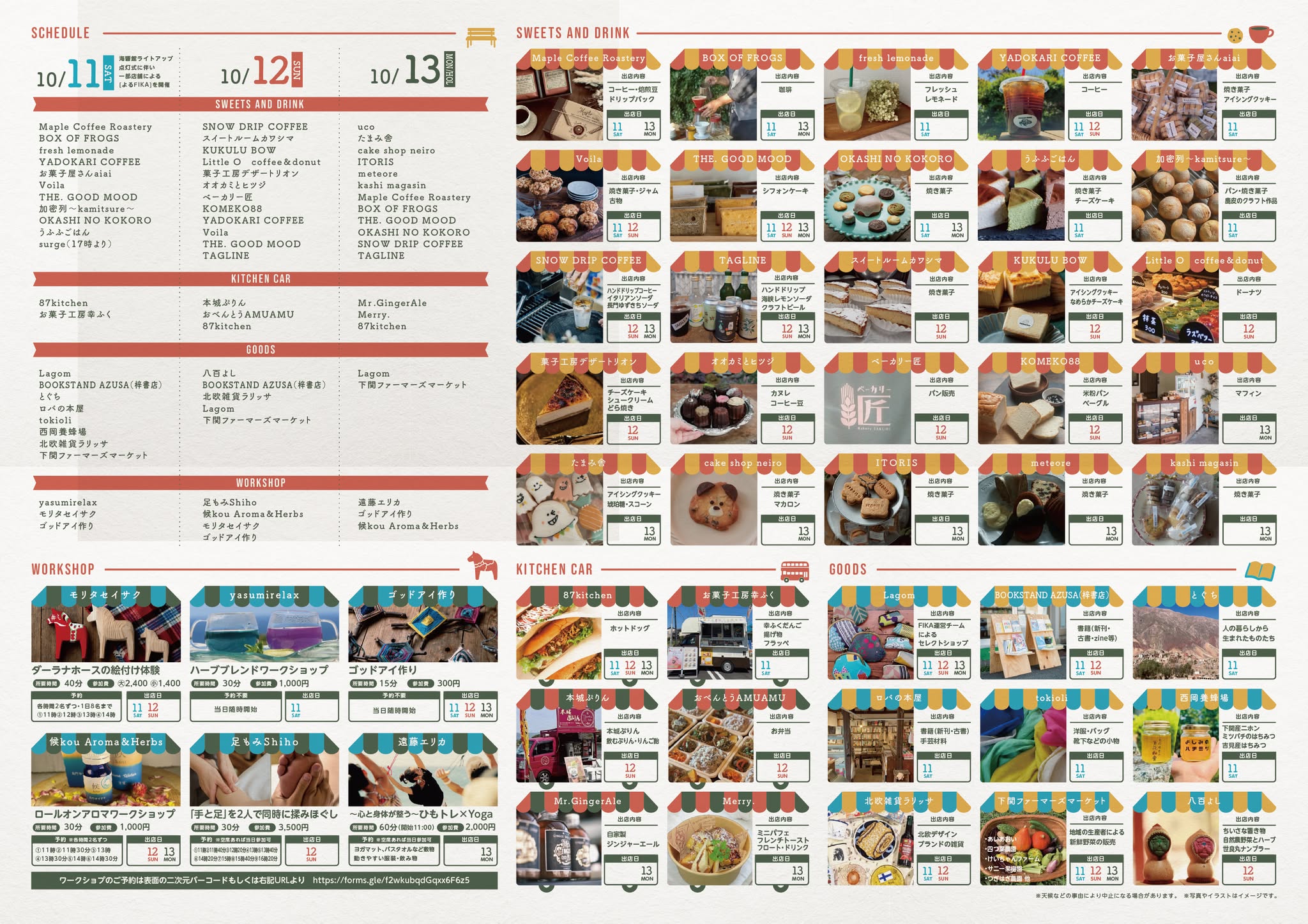 内 容:飲食の販売、雑貨の販売、ワークショップ、大道芸