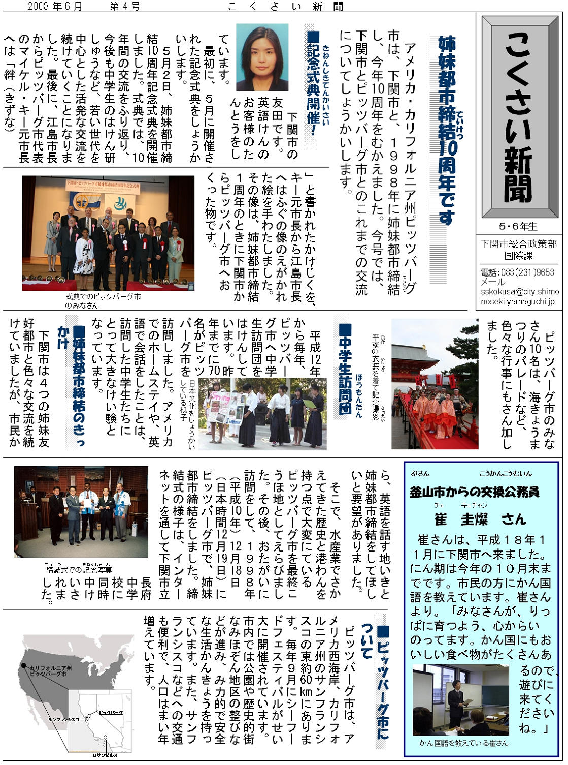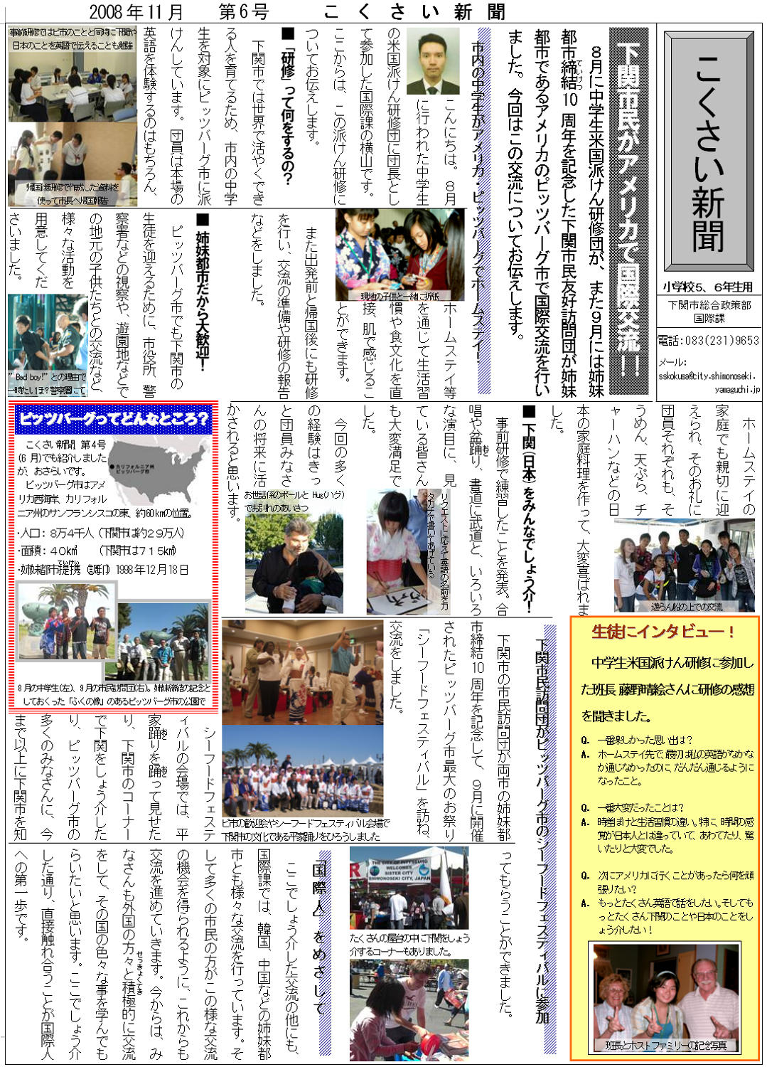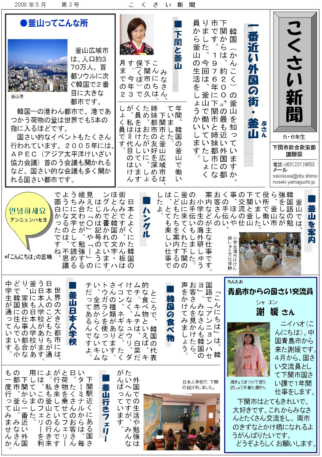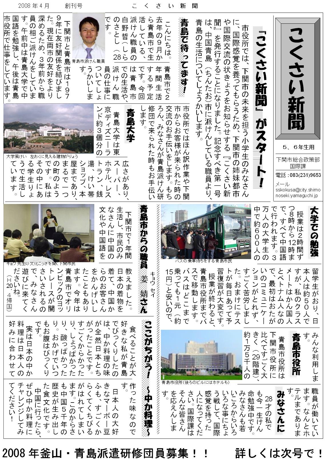 国際課では下関市の国際交流を小学生、中学生にわかりやすく紹介した「こくさい新聞」を発行しています。ここではさらに多くの皆様におしらせするために発行済みの「こくさい新聞」を掲載します。ぜひご覧ください。